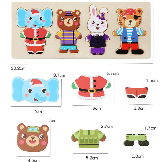 Fröhliches Anziehspiel aus Holz für Kinder Dieses niedliche Anziehspiel aus Holz bietet stundenlangen Spaß beim Umkleiden von Bären- oder Hasenfiguren. Kinder können verschiedene Kleidungsstücke kombinieren und so ihre Kreativität sowie...