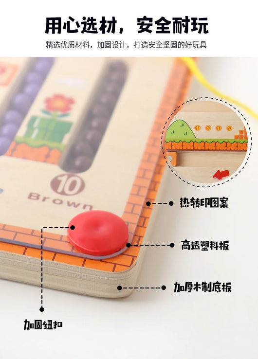 Dieses farbenfrohe Montessori-Spielzeug ist ideal, um Kindern spielerisch Farben, Sortierung und Feinmotorik näherzubringen. Mit einem magnetischen Stift können die Kugeln durch das Labyrinth geführt werden – ein tolles Training für Konzentration und Hand-Auge-Koordination!