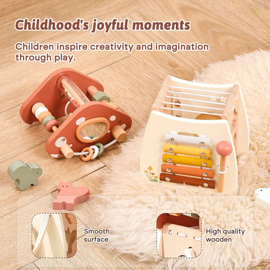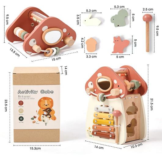 Montessori 5-in-1 Holzspielzeug mit Pilzdesign