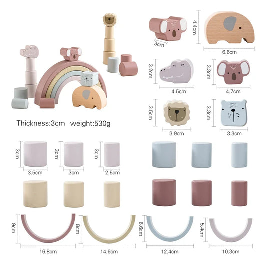 Die Kinder können die Tierfiguren balancieren, aufeinanderstapeln oder mit der beiliegenden Schnur auffädeln. Das Spiel fördert Kreativität und Geschicklichkeit – perfekt für zu Hause, Kindergarten oder Vorschule.