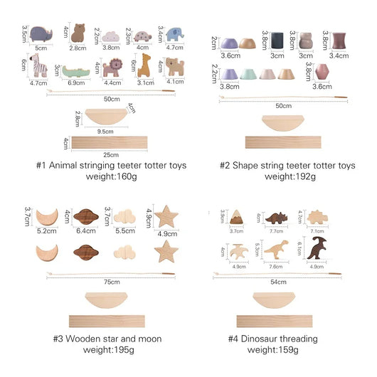 Dieses liebevoll gestaltete Montessori Holzspielzeug fördert spielerisch das Gleichgewicht, die Konzentration und die Feinmotorik Ihres Kindes. Mit verschiedenen Formen wie Sternen und Monden sowie einem Fädelspiel wird die Kreativität angeregt und das Verständnis für Farben und Formen verbessert. Ideal für Kinder ab 4 Jahren zur frühkindlichen Förderung und fantasievollen Beschäftigung.