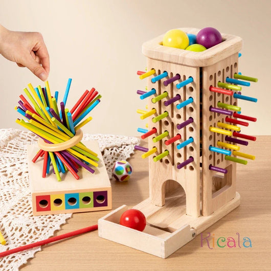Fördern Sie die Feinmotorik und das mathematische Denken Ihres Kindes mit diesem unterhaltsamen und lehrreichen Montessori-Spiel. Der Stick-Turm aus Holz bietet zahlreiche Spielmöglichkeiten, bei denen Kinder Stäbchen stapeln, zählen und nach Würfelergebnissen sortieren können. Ideal für das spielerische Lernen zu Hause oder im Kindergarten.
