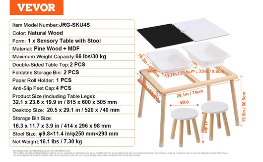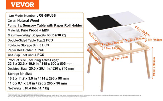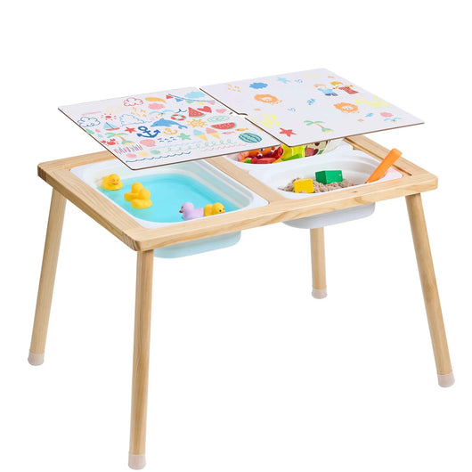 Sensorischer Holztisch für Kinder mit Aufbewahrungsboxen und Wendeblättern