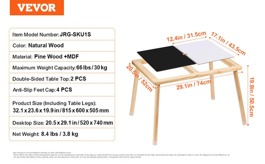 - Doppelseitige Tischplatten: Zwei Wendeblätter bieten abwechslungsreiche Spiel- und Lernflächen.