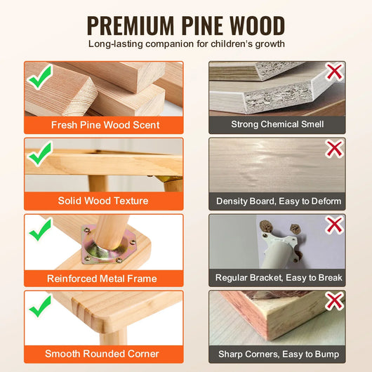 - Hochwertiges Material: Aus natürlichem Kiefernholz gefertigt mit glatter, splitterfreier Oberfläche – stabil und kindersicher.